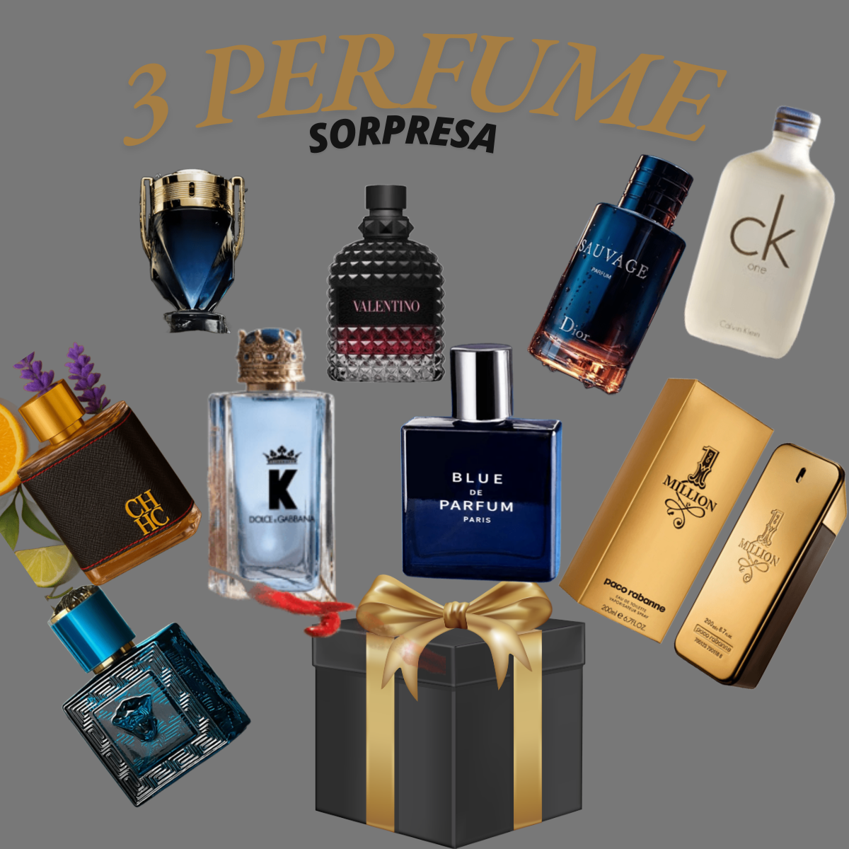 Descubre la experiencia de un aroma intenso, sofisticado y masculino con este increíble paquete de 3 perfumes réplica sorpresa para hombre. Diseñados para hombres seguros, modernos y con personalidad, estos perfumes ofrecen fragancias inspiradas en marcas reconocidas, con excelente fijación y proyección.