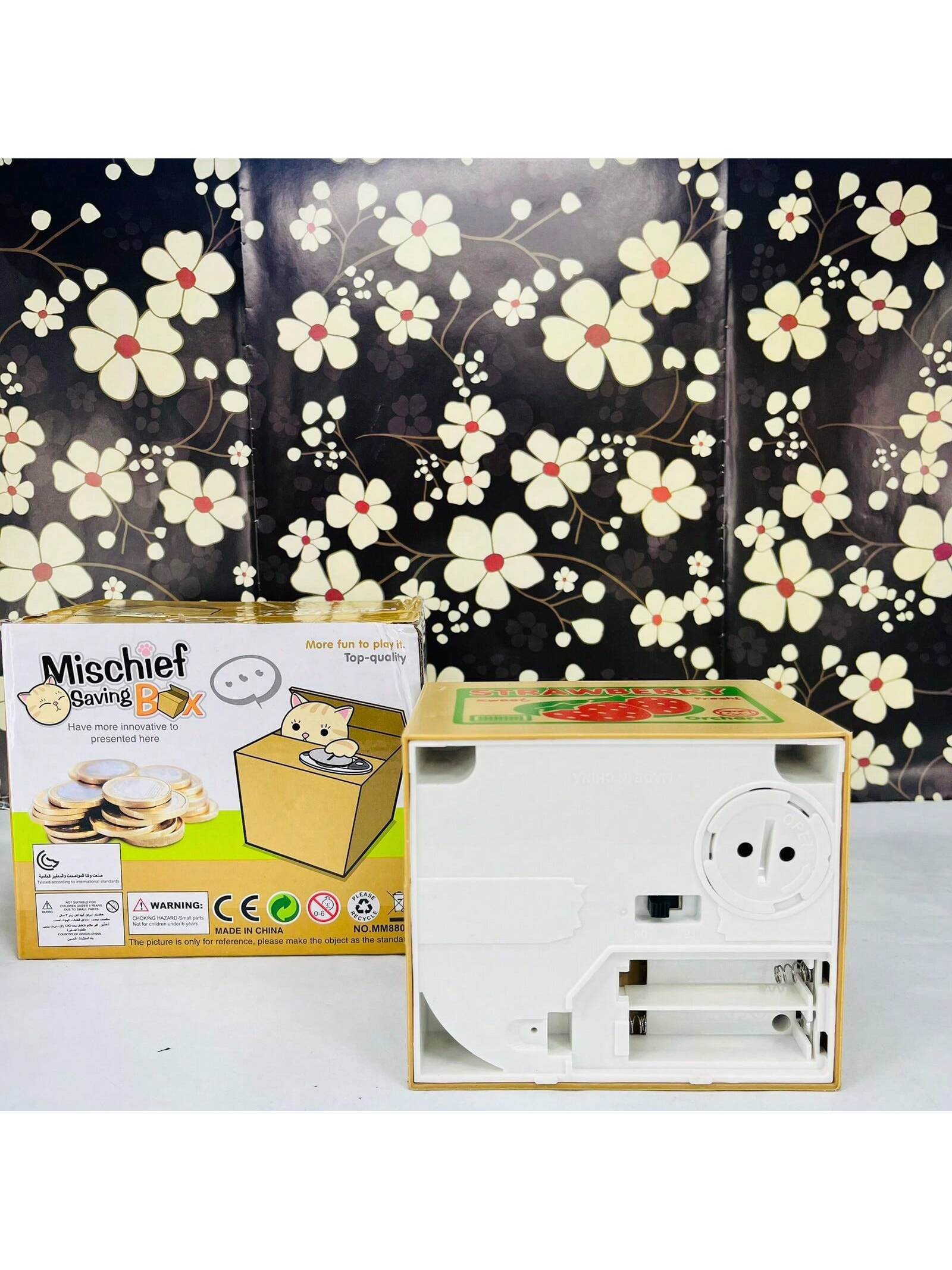 Automatizado: adorable gatito mecánico sale de la caja de cartón para robar tus monedas y ayudarte a recoger cuando pones monedas y presionas.