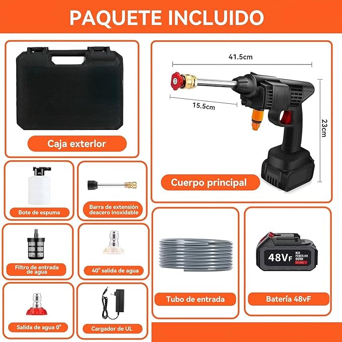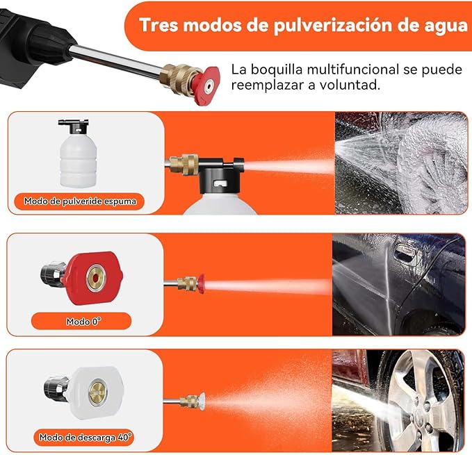 Hidrolavadora inalámbrica portátil diseñada para limpiar autos, patios y superficies exteriores con mayor presión que una manguera convencional. Ofrece ajuste de chorro, diseño compacto y fácil transporte. Es práctica para tareas domésticas sin necesidad de instalación compleja.
