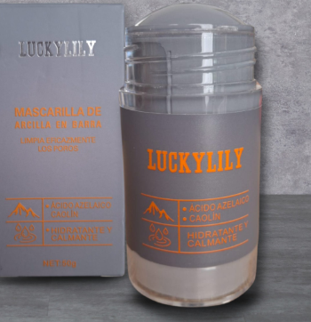 La mascarilla en la imagen es una mascarilla facial o capilar de la marca LUCKYLILY que contiene ácido hialurónico. El ácido hialurónico es conocido por sus propiedades hidratantes y anti-envejecimiento.