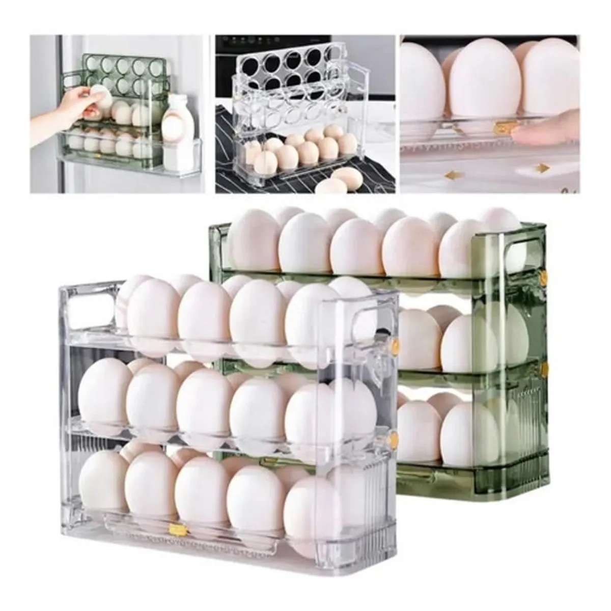 Diseño de Gran Capacidad: Tres niveles que permiten almacenar hasta 30 huevos en un espacio compacto.