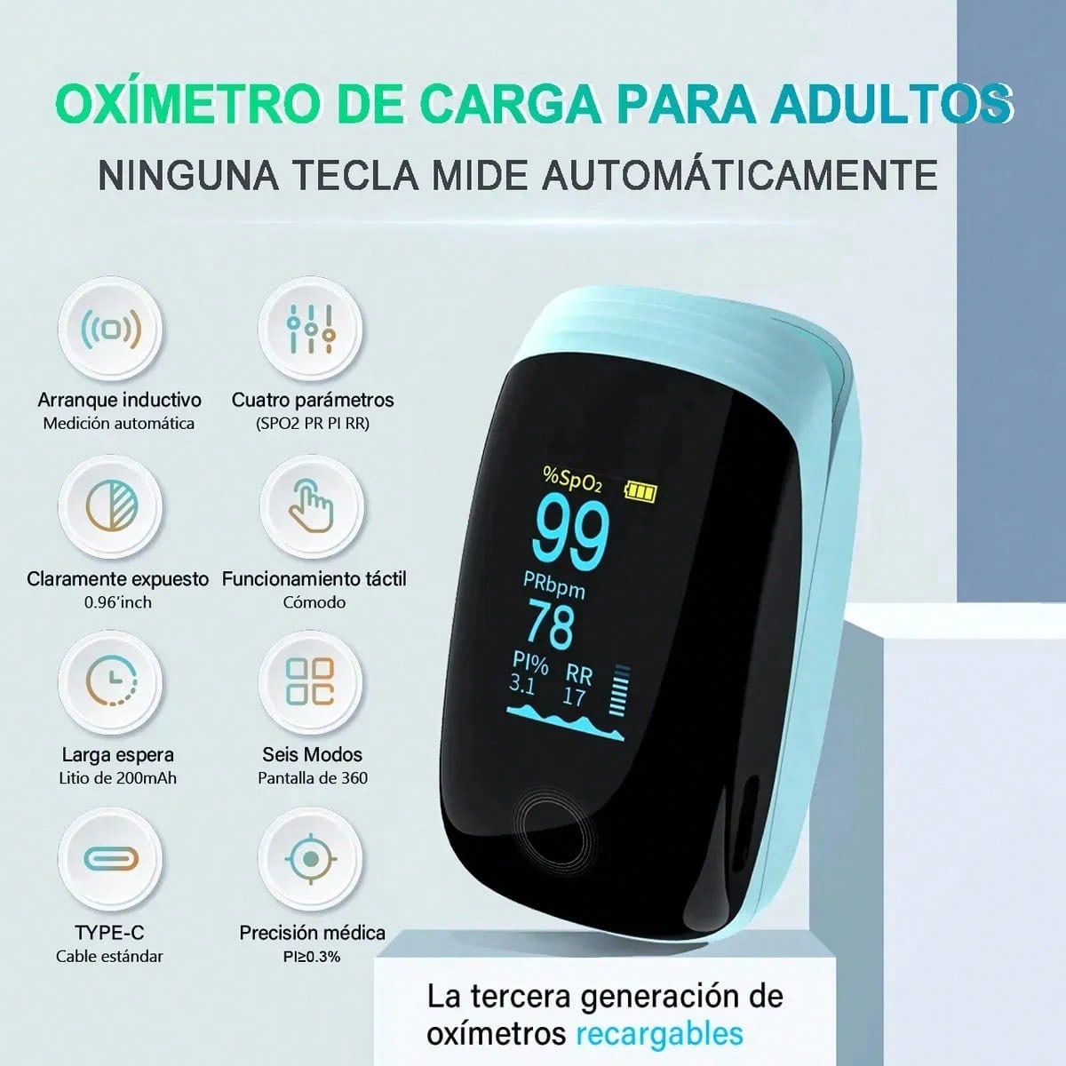 Este oxímetro es excelente, listo para usarse nada más sacarlo de la caja. Solo debes introducir el dedo durante 3-5 segundos para obtener las lecturas. Al retirar el dedo, el dispositivo se apagará automáticamente, ahorrando energía y siendo ecológico. Pantalla LED grande y batería recargable Equipado con una pantalla LED retroiluminada de alto brillo, facilita la lectura clara de parámetros como SpO2, pulso y gráfico de barras. Funciona con una batería recargable mediante un conector Tipo C, lo que lo hace más ecológico.