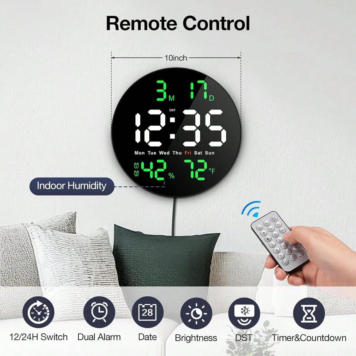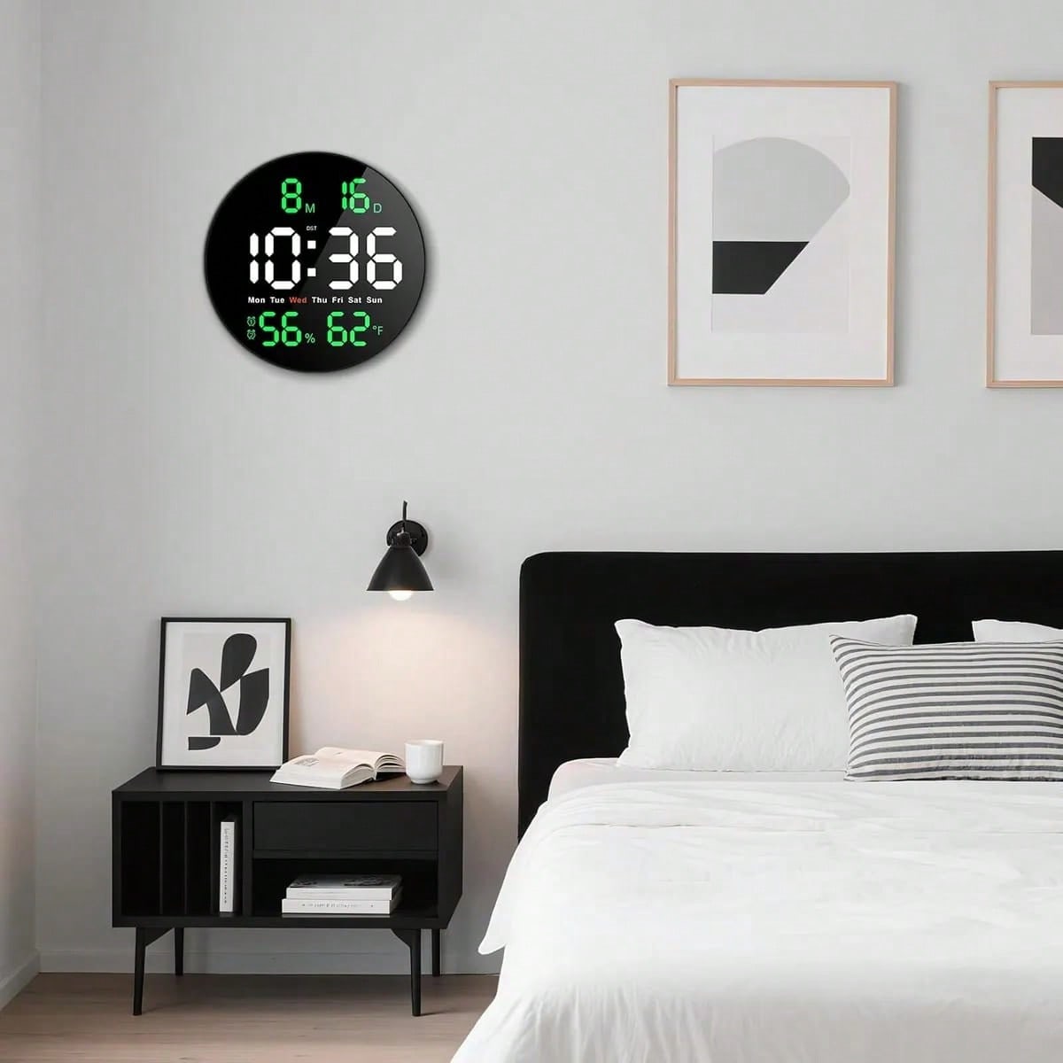 Dos uso manera: Se puede colocar en la mesa o colgar en la pared Reloj de pared Digital grande enchufable: Pantalla LED de reloj de pared grande HD de 9 pulgadas con pantalla de tiempo de dígitos de alto valor de 3,15 pulgadas, con un espaciado de fuentes más grande, asegúrese de que nuestro reloj de pared LED pueda ver fácilmente la hora claramente incluso a distancia.